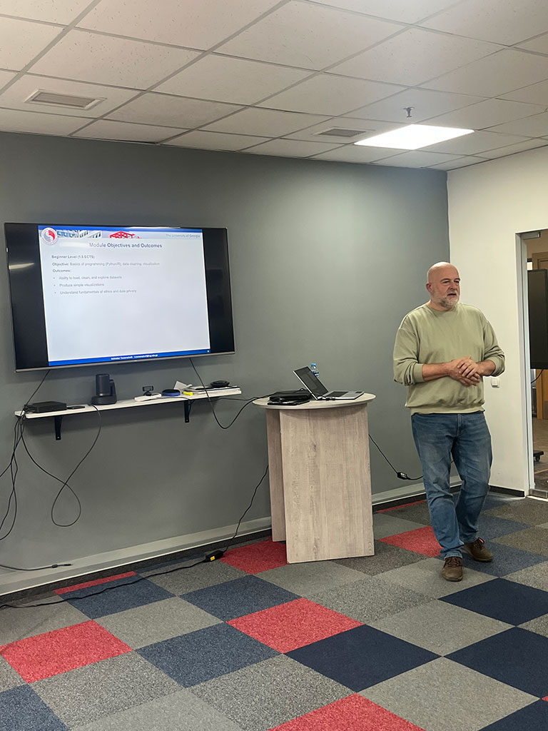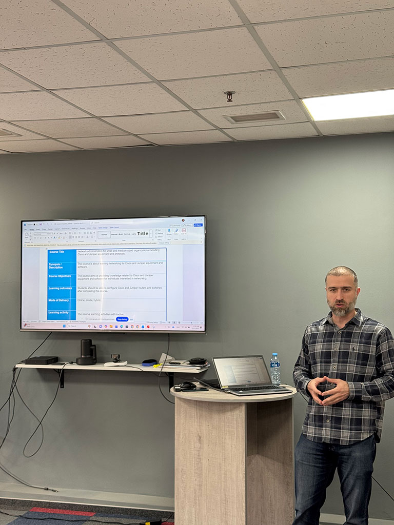 Participants were introduced to several newly developed micro credential course syllabuses created within the project framework. These include Python/R programming for medical data analysis, GIS applications for tourism, microcontroller programming for drones, network technician training and network administration for SMEs.